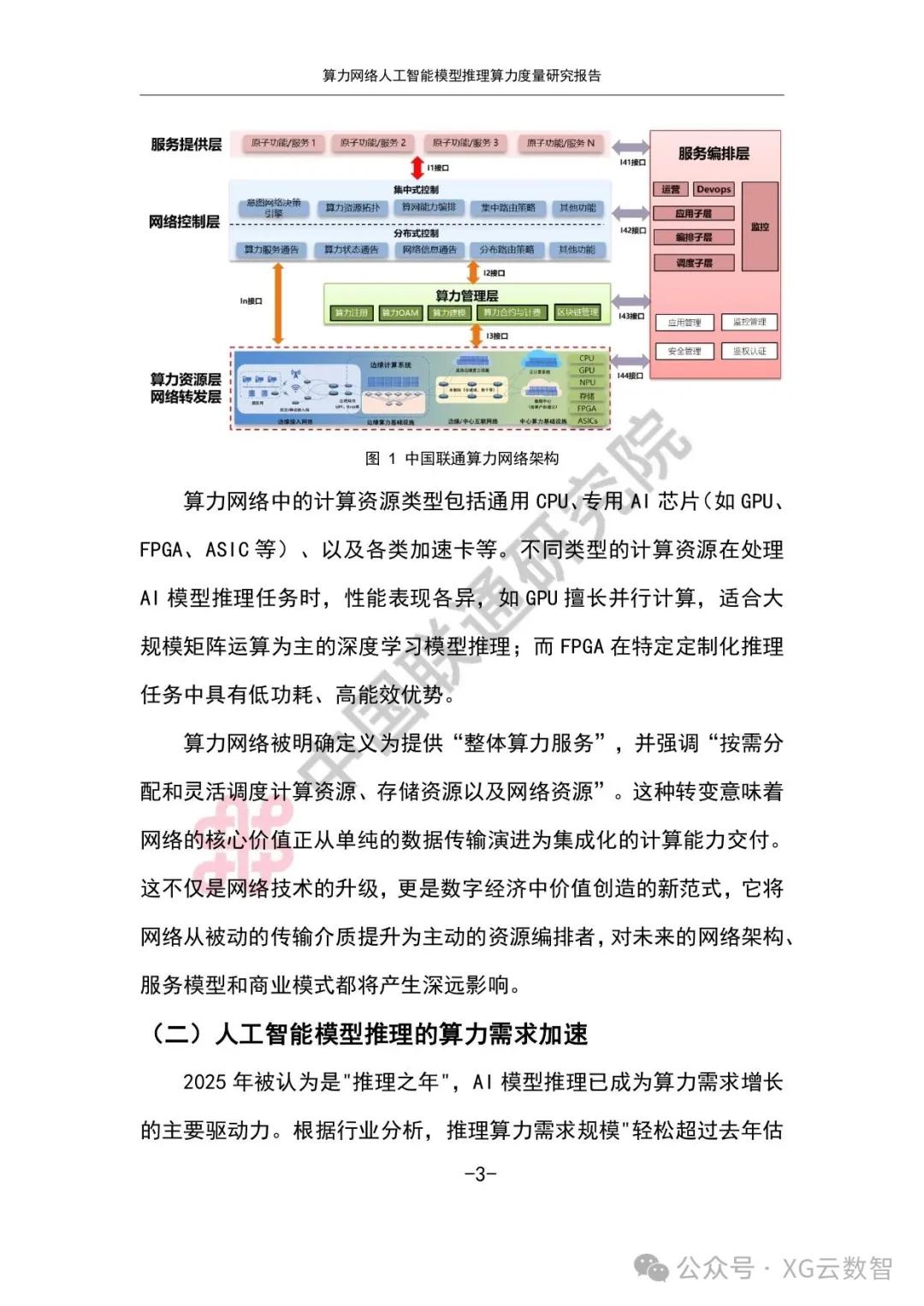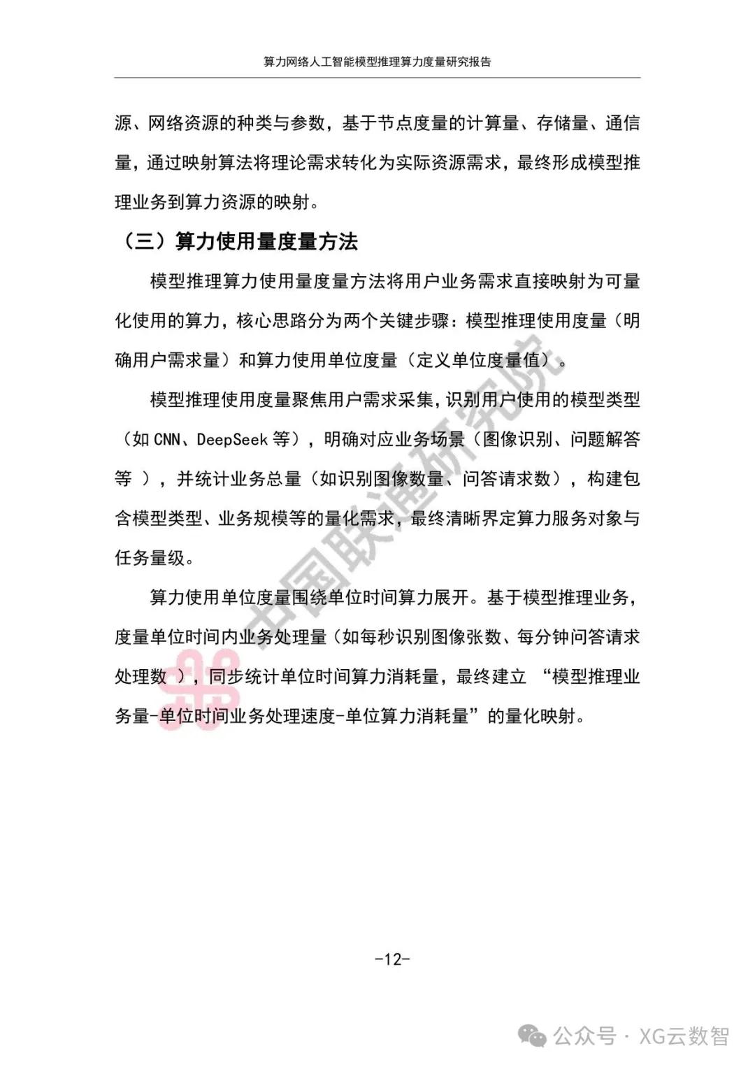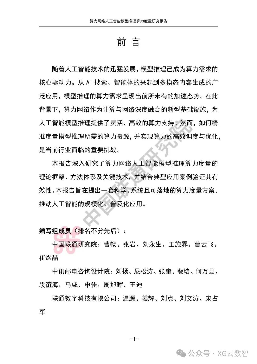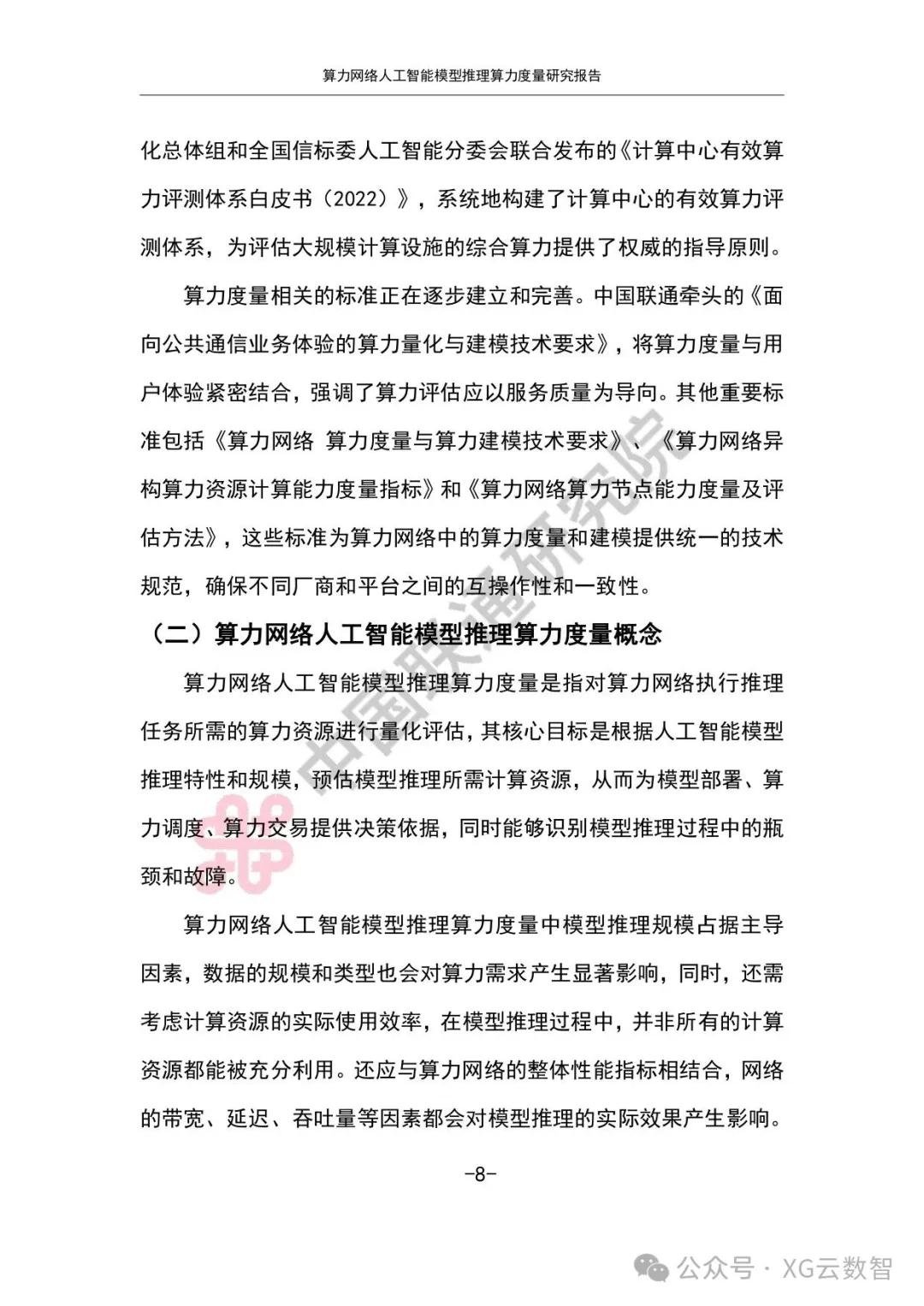 今天分享一份中国联通研究院联合中讯邮电咨询设计院、联通数字科技有限公司联合编制的《算力网络人工智能模型推理算力度量研究报告》,报告系统性地提出人工智能模型推理算力度量理论与方法体系,为算力网络中模型推理的性能评估、智能调度与计量计费提供了技术支撑。